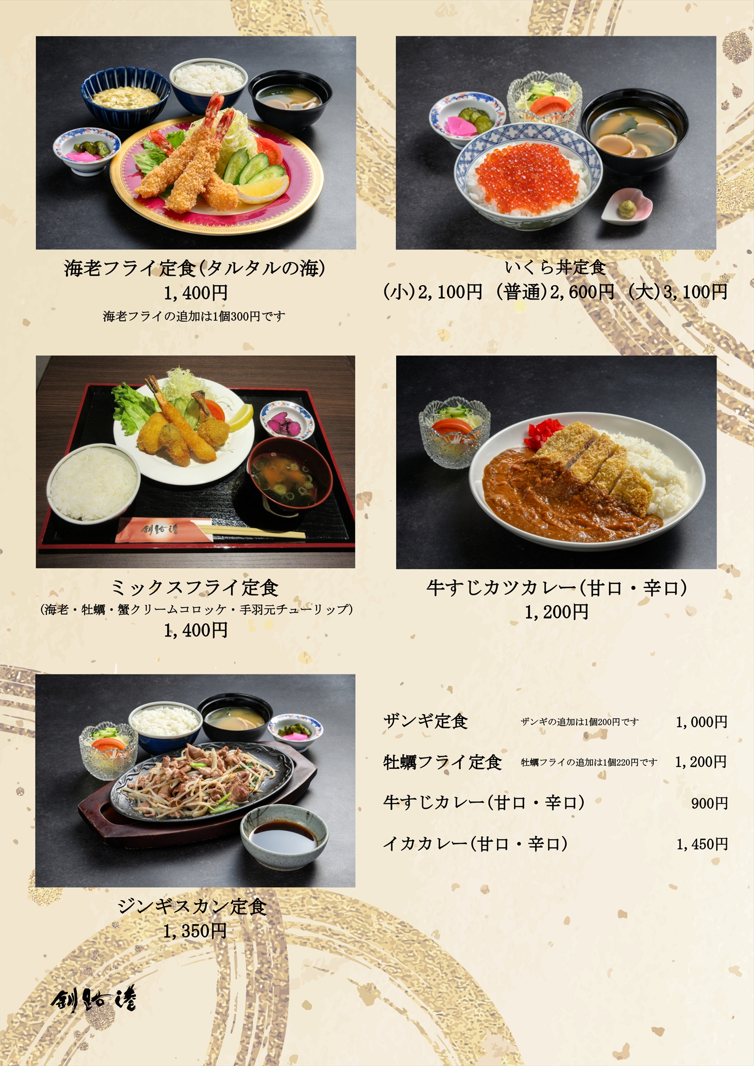 ランチタイムのご飯の追加注文は、大・中・小すべて100円です。表示価格は税込みです。トッピング 温泉卵150円・目玉焼150円・生卵100円